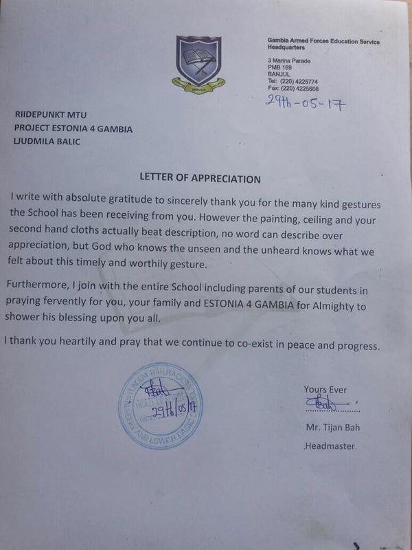 Estonia 4 Gambia is a project through which we provide material support to children in Gambia – mainly clothing and footwear, but also toys, school supplies, and other essentials.
